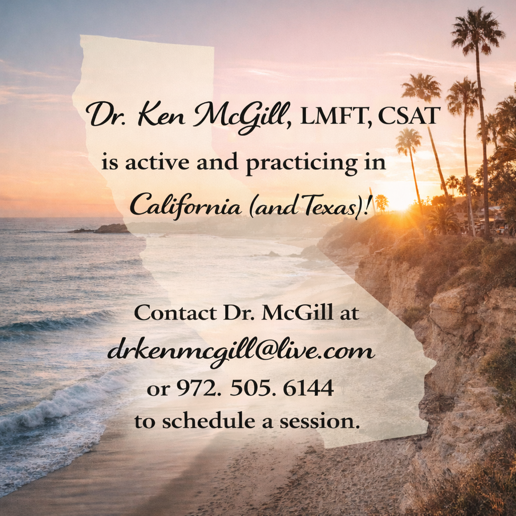 Dr. Ken McGill is an ordained minister and has been involved in counseling for more than 25 years. Dr. McGill holds a Bachelor's degree in Religion from Pacific Christian College (now Hope International University), a Certificate of Completion in the Alcohol and Drug Studies/Counseling Program from the University of California at Los Angeles and a Masters degree in Clinical Psychology from Antioch University. Dr. McGill received his Doctorate in Clinical Psychology with an emphasis in Family Psychology from Azusa Pacific University in May, 2003. Dr. McGill's dissertation focused on the development of an integrated treatment program for the sexually addicted homeless population, and Ken was "personally mentored" by dissertation committee member Dr. Patrick Carnes, a pioneer in the field of sex addiction work. Dr. McGill authored a chapter in the text The Clinical Management of Sex Addiction, with his chapter addressing the homeless and sex addiction. Dr. McGill is also a Licensed Marriage and Family Therapist in the States of Texas and California and Mississippi, and is a Certified Sex Addiction Therapist, through the International Institute for Trauma and Addictive Professionals (IITAP). Dr. McGill had a private practice in Glendora, CA (Aspen Counseling Center), Inglewood, CA (Faithful Central Bible Church), and Hattiesburg, MS (River of Life Church), specializing in the following areas with individuals, couples, families, groups and psychoeducational training: addictions and recovery, pre-marital, marital and family counseling, issues related to traumatization and abuse, as well as depression, grief, loss, anger management and men's and women's issues. Dr. McGill also provided psychotherapeutic treatment with Student-Athletes on the University of Southern Mississippi Football and Men's Basketball teams. Dr. McGill served as the Director of the Gentle Path Program, which is a seven-week residential program, for people who are challenged with sexual addiction, sexual anorexia, and relationship issues. Dr. McGill also supervised Doctoral students in the Southern Mississippi Psychology Internship Consortium with the University of Southern Mississippi. Dr. McGill was inducted into the Azusa Pacific University Academic Hall of Honor, School of Behavioral and Applied Sciences, in October, 2010. Dr. McGill currently works as a Private practice clinician with an office in Plano, Texas, providing treatment with people who are challenged in the areas mentioned above.